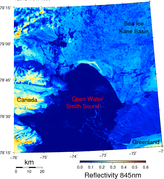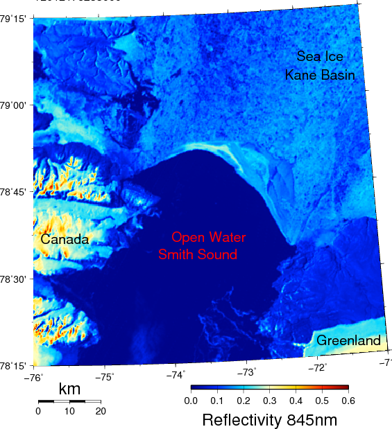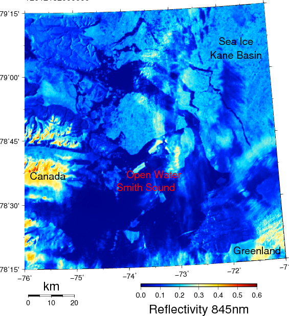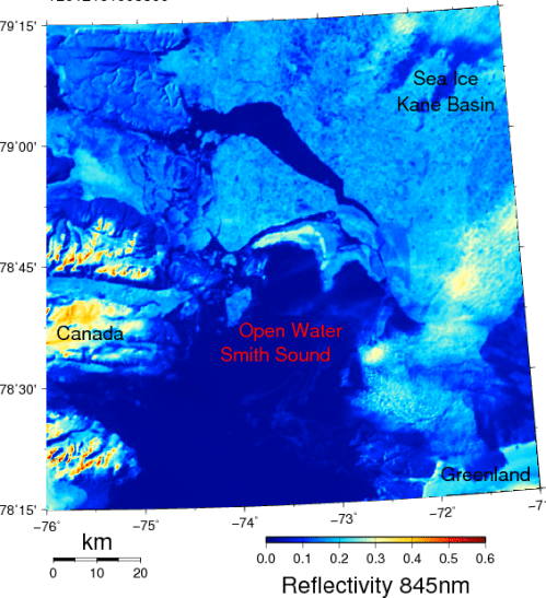 EDIT-2: The moorings we try to recover this summer are to the north of Kane Basin and to the south where Petermann Fjord enters Nares Strait. This map shows it (also notice how badly the coastline of Greenland is surveyed):