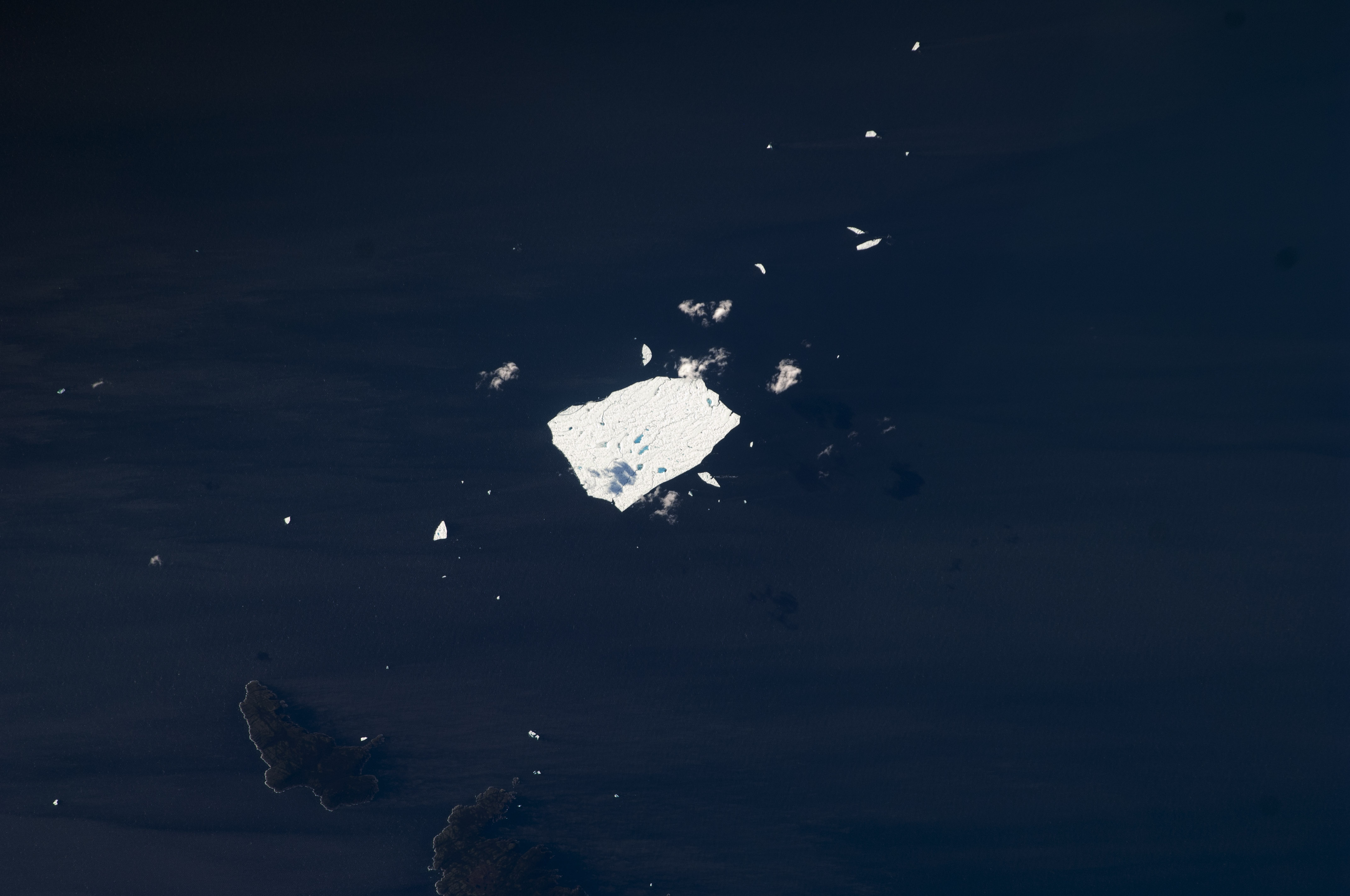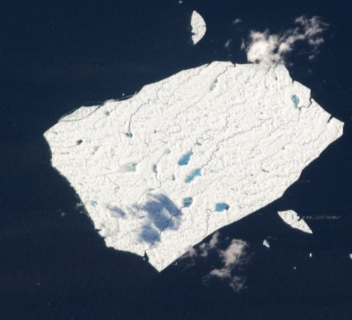 Last remnant of Petermann Ice Island 2010-A as seen from the International Space Station on Aug.-29, 2011 when it was about 3.5 km wide and 3 km long [Photo credit: Ron Garan, NASA]