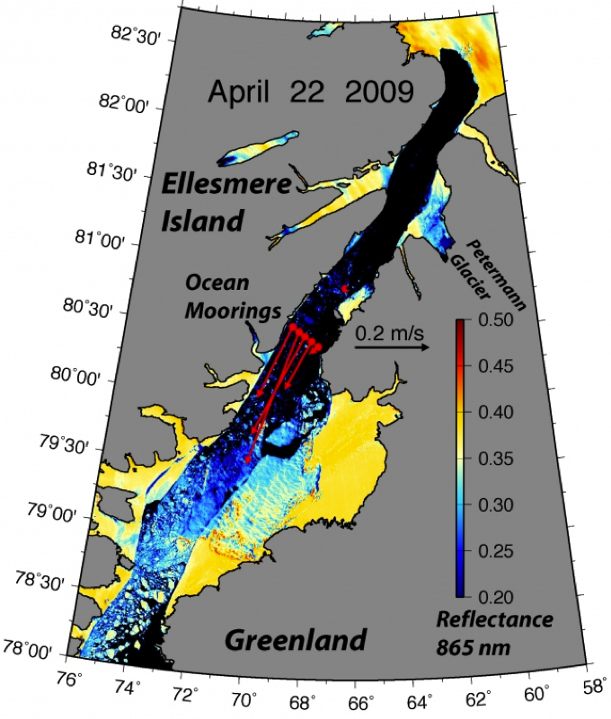 Johnson, H., Münchow, A., Falkner, K., & Melling, H. (2011). Ocean circulation and properties in Petermann Fjord, Greenland Journal of Geophysical Research, 116 (C1) DOI: 10.1029/2010JC006519