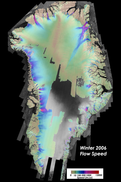 Surface velocity of Greenland’s Ice Sheet in 2006 [From http://bigice.apl.washington.edu%5D