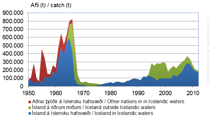 Herring catches off Iceland from 1950 through 2010. [From fisheries.is]