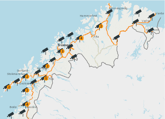 The ice-free coast places Norway’s oil, gas, and fishery resources within easy reach and partly explains Norway’s unique infrastructure above the Arctic circle that is far superior to any other Arctic country. This includes its neighbor Russia to the east as well as the US, Canada, and Greenland. Just look at this dense network of traffic web-cams above the Arctic Circle that all relay imagery and data in real-time via http://www.vegwesen.no