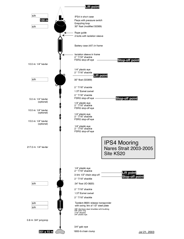 Sketch of ice-profiling sonar mooring deployed on the bottom of the ocean. Design by Dr. Humfrey Melling of Fisheries and Oceans, Canada.