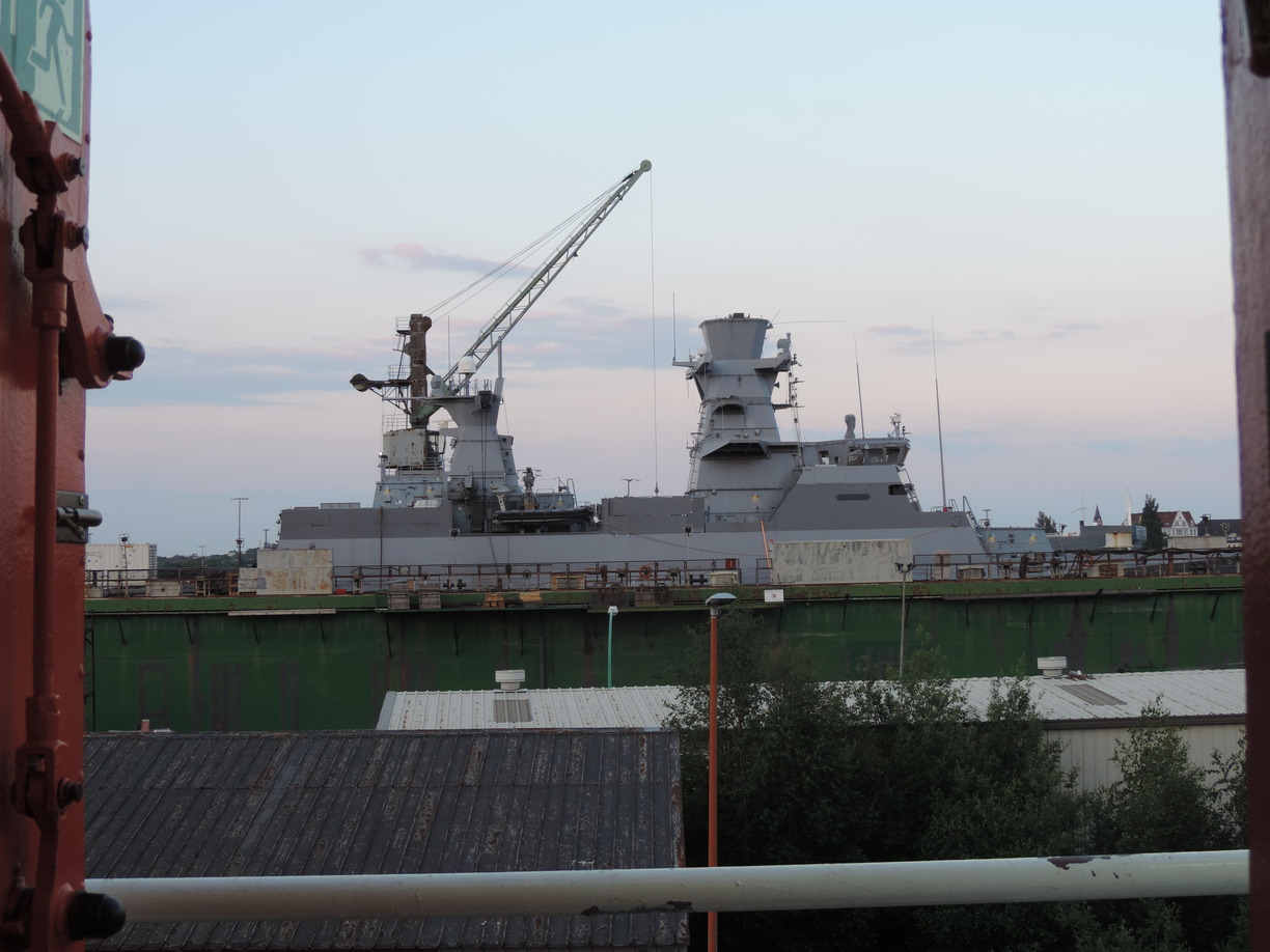 German naval ship in dry dock. Picture taken from aboard FS Poalrstern.