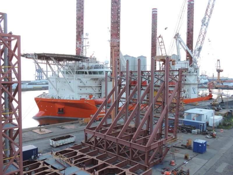 Offshore wind power system deployment ship. Picture taken from aboard FS Polarstern.