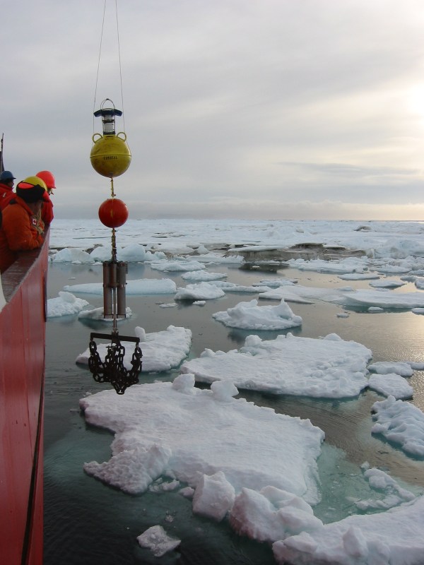 AcousticDoppler Current Profiler mooring deployment in Nares Strait from aboard the CCGS Henry Larsen in 2009.