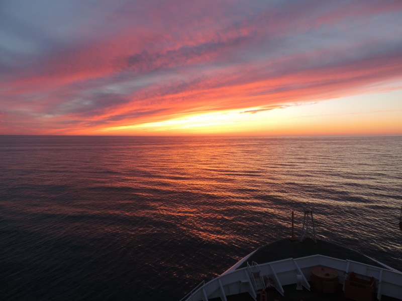 Sunset over the North Sea heading to north-east Greenland.