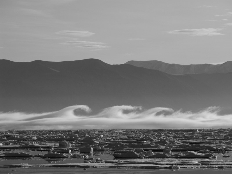 Shear instabilities in Nares Strait seen from Greenland in August of 2003.