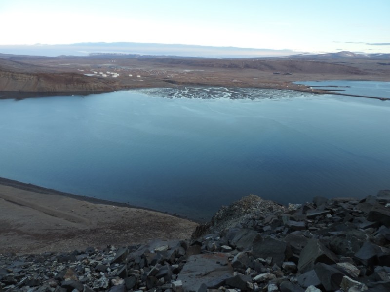 Thule AFB at Pitufik as seen from atop Dundas Mountain Sept.-2, 2015. Note the tidal mud-flats at low tide next to the pier.