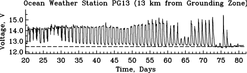 Voltage at Ocean Weather Station on Petermann Gletscher.