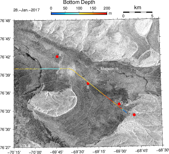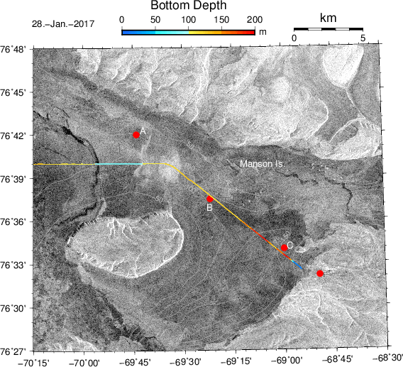 Wolstenholme Fjord, Greenland Jan.-28, 2017 from Sentinel-1 radar.