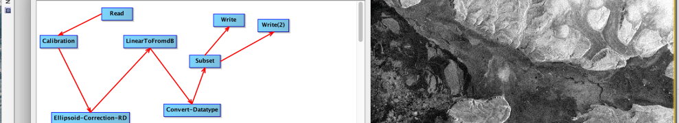 Screenshot of SNAP software and processing with [1] input and [2] output of the Feb.-5, 2017 data from Wolstenholme Fjord.