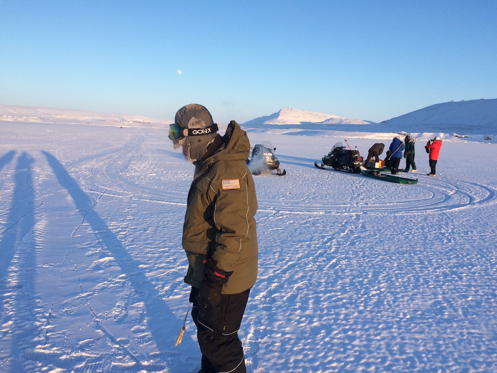 Working on the sea ice off Thule Air Base is a team effort that requires much co-ordination, learning, and communication which are more difficult to do at -33 C.