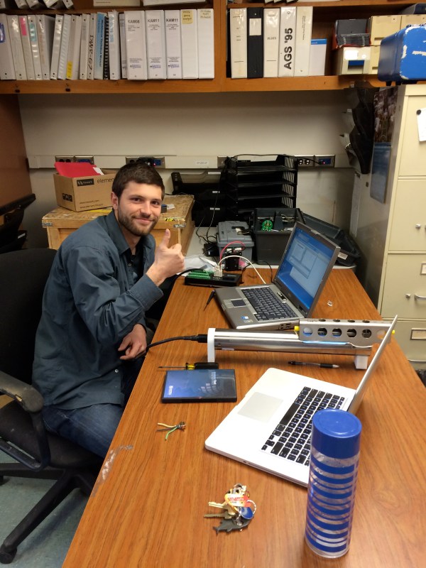 PhD student Peter Washam programming ocean sensors at the University of Delaware in February 2015.
