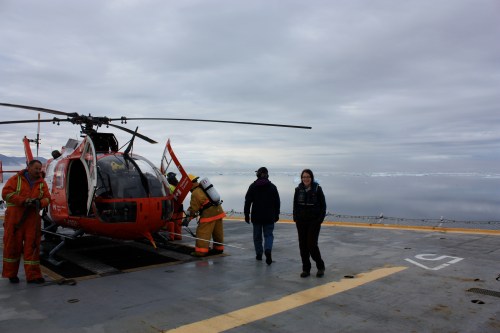 I was filled with awe as I took pictures because I realized I could only see the edges of it near the ship, where it was narrower, and that it was so huge that I could barely comprehend it’s size. Pat and Jo got to go up in the helicopter with the ice specialist to check out the extent of the ice, and it was impossible to get the whole island in a photo, even from 3000ft in the air. Although there have been many jokes about the comparison of the ice island to the size of Manhattan, I think it was appropriate. Manhattan may not be a very large island, but it is immense in character, and the ice island is twice it’s physical size and definitely has character of it’s own. The rolling hills and rivers and lakes that cover the surface of the ice may not be as large as the lakes I am used to, but the expanse of white goes on forever. It’s awe-inspiring.