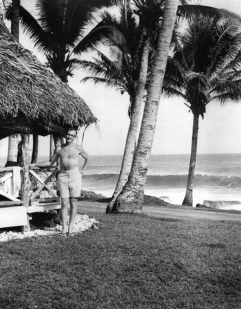 The two plots on the left provide more detail, as it shows how the current varies with depth and distance from the coast along a line from the coast towards offshore. The bottom of the shallow ocean is the black line from 100-m to 350-m meter at a distance of 20-40 km from the coast. The top-left panel shows the current (in colors) across the section where blue colors indicate currents flow into the page while red colors indicate currents that flow out of the page towards us viewing it with the coast on the left. The bottom-left panel shows the velocity component along the section with a flow that is mostly onshore near the surface.