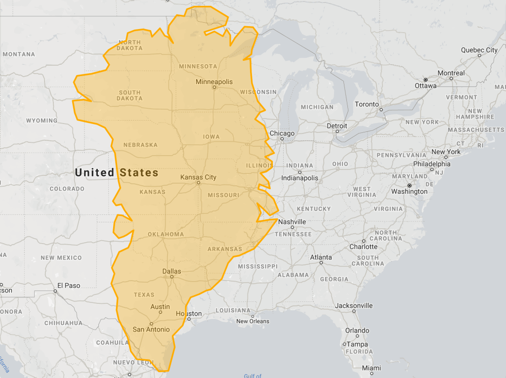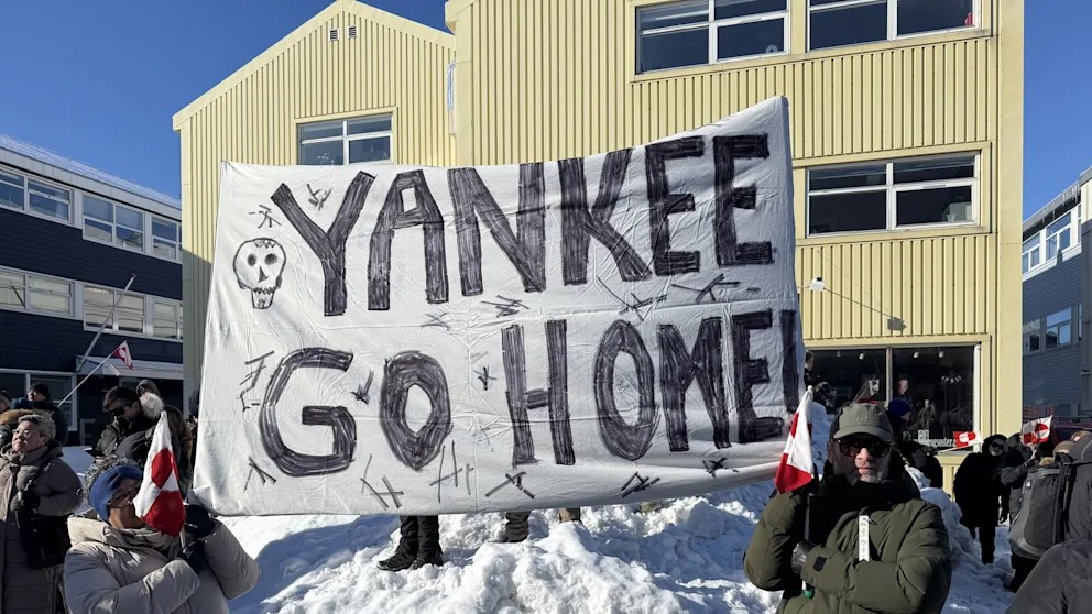 Sketch of ocean current systems off Greenland and eastern Canada. Colors represent topography of ocean, land, and Greenland ice sheet.
