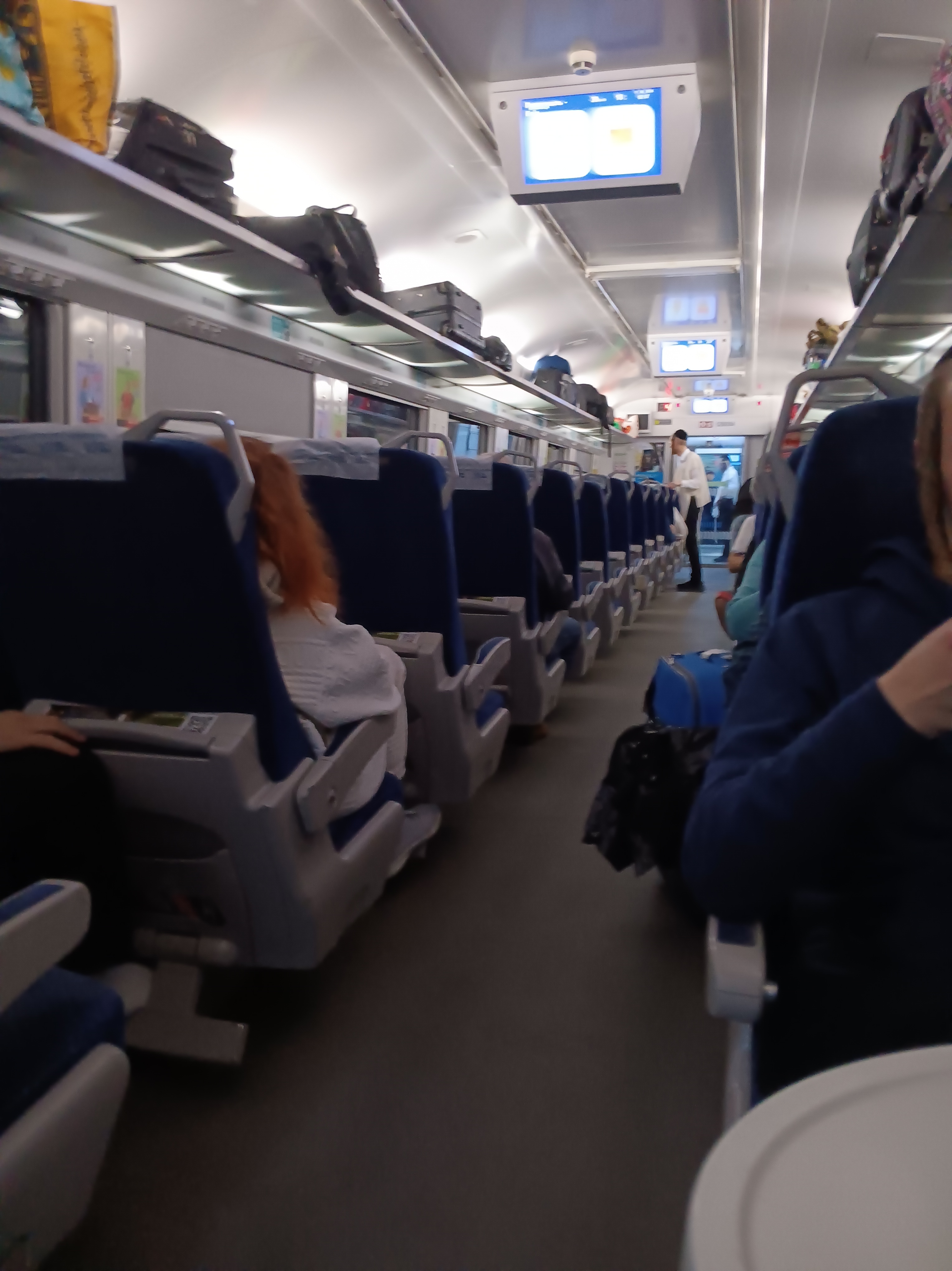 Ukrainian border guards checked passports on the train while different heavily armed military personel counted the number of passengers at least 3 times independently of each other. It was pitch dark outside without any lights visible anywhere. The train, too, had lights dimmed. After a very short 45 minutes the train to Kyiv made its first stop in Lviv and I got off.