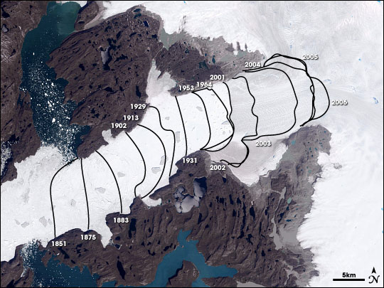 Jacobshavn lost its buttressing ice-shelf during the last decade and now rapidly discharges ice from the Greenland ice-sheet directly into the ocean at a rapid rate. Most likely, the ice-shelf was melted by the ocean from below (Holland et al., 2008). This type of accelerated discharge raises global sea-level, because ice previously sitting on Greenland’s bedrock moves into the ocean where it eventually will melt. In response to the ice removed, the bed-rock rises as there is less mass above it to hold it down (Khan et al, 2010). All this has actually been measured by satellites (mass-loss) and ground-based GPS (bed-rock response). We live in a dynamic and rapidly changing world where our sensors and software show new patterns of physics that have never been seen before. There is so much more to discover …
