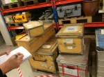- One of three crates ready for shipment to the ship. Notice the organizing hand of Dr. Celine Heuze bottom right.