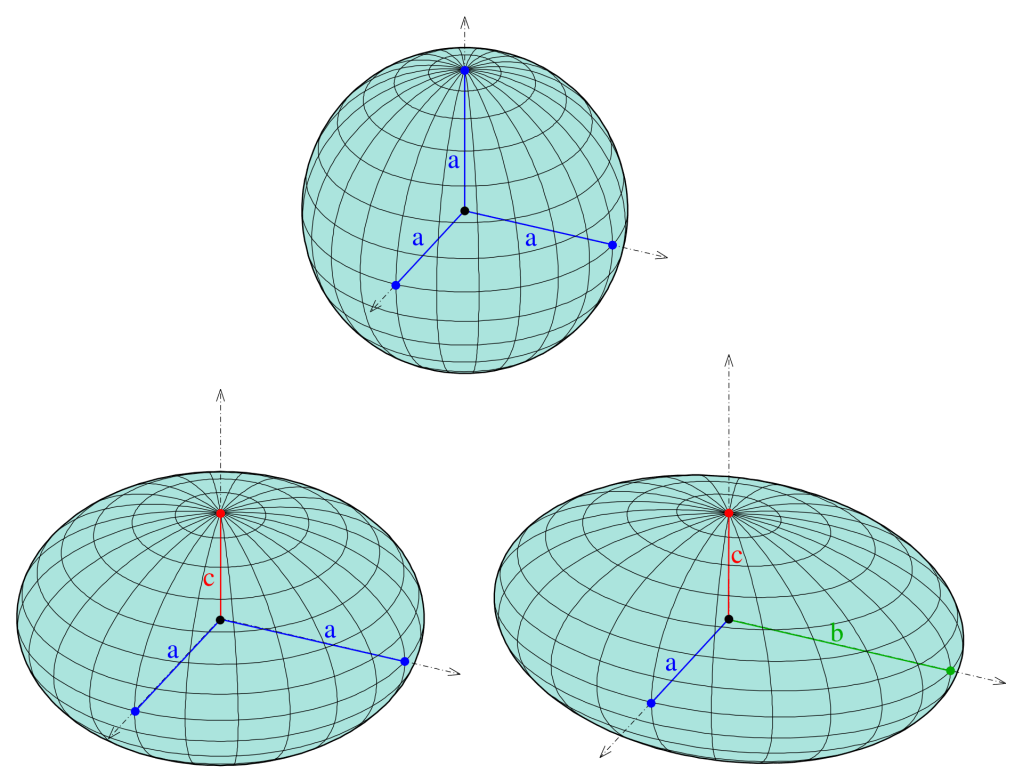 Rotation adds a strong and often counter-intuitive element because unlike a force that accelerates a car in the same direction that the force is applied, a force applied to a rotating system generates a torque perpendicular to both the force and the direction to the rotational axis. This can be confusing and one has to either watch the movies or go through advanced vector calculus. Furthermore, a rotating sphere acts differently than a rotating spheroid which acts differently from a rotating triaxial spheriod. Our peanut earth is the latter and thus has at least three axes of orientation (a and b and c) that all have different kinetic energy and angular momentum states. This makes for wobbly rotations which are sensitive to changes in both force balances and the distribution of masses like ice and water that can move to different locations at different times and stay there for a while.