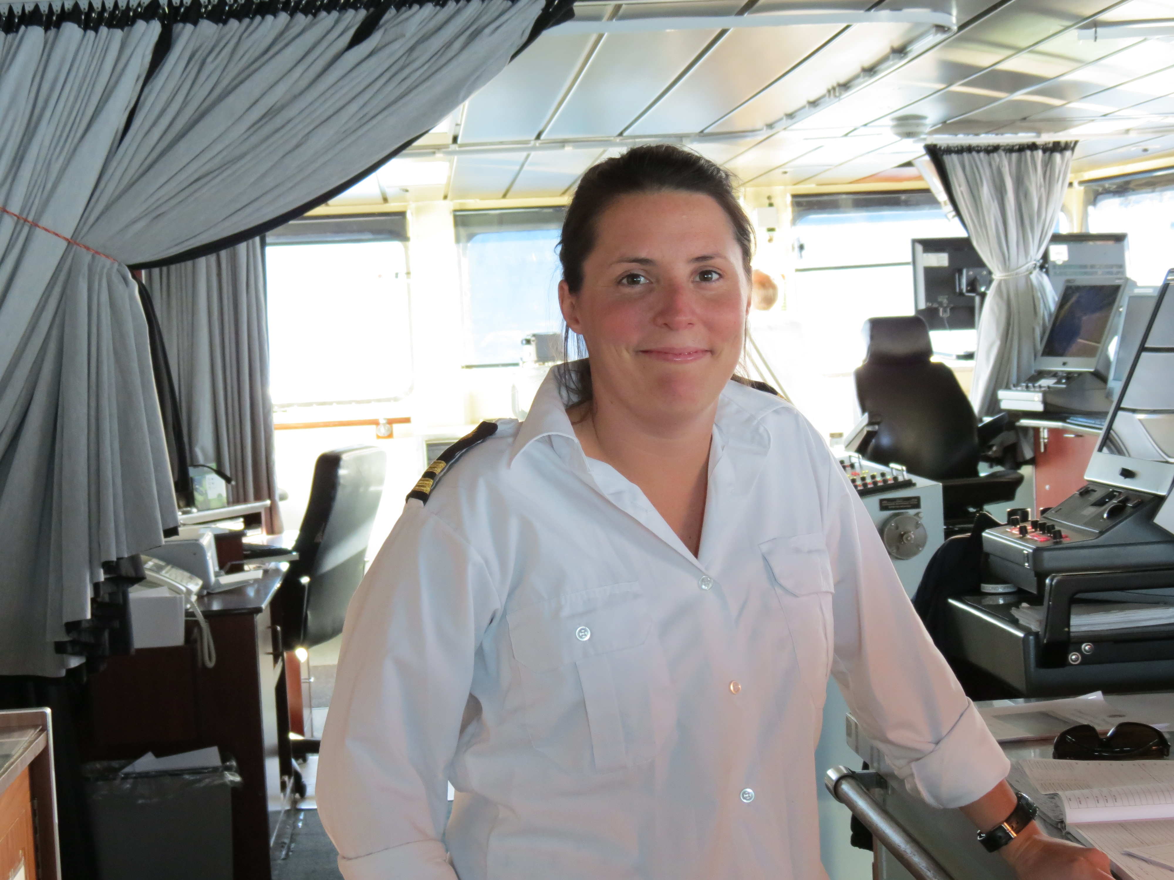 Second Officer and navigator Rebecca Acton-Bond on a sunday on the bridge of the CCGS Henry Larsen in August of 2012 in Nares Strait. [Photo Credit: Canadian Coast Guard, Kirk McNeil, Labrador]