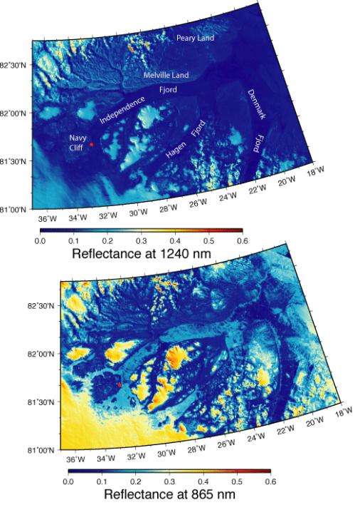 I am using the satellite data and maps here to plan an experiment on the sea ice of Westenholme Fjord. Next year in March/April I will lead a team of oceanographers, engineers, and acousticians to place and test an underwater network to send data from the bottom of the ocean under the sea ice near Saunders Island to the pier at Thule and from there on to the internet. We plan to whisper from one underwater listening post to another to communicate over long ranges (20-50 kilometers) via a network of relay stations each operating smartly at very low energy levels. We will deploy these stations through holes drilled through the landfast ice 1-2 meters thick. The work is very exploratory and is funded by the National Science Foundation. Wish us luck, as we can and will use it … along with aerial photography that we turn into maps.