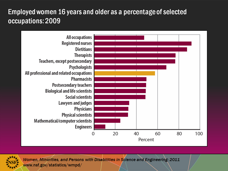 Since Dunbar’s entrance into the world of polar science, women have faced fewer challenges entering scientific fields, but are still underrepresented. Men occupied 74% of science and engineering jobs in the United States in 2006 according to a 2011 National Science Foundation (NSF) study. Within the sciences, even fewer women are in physical sciences and engineering.