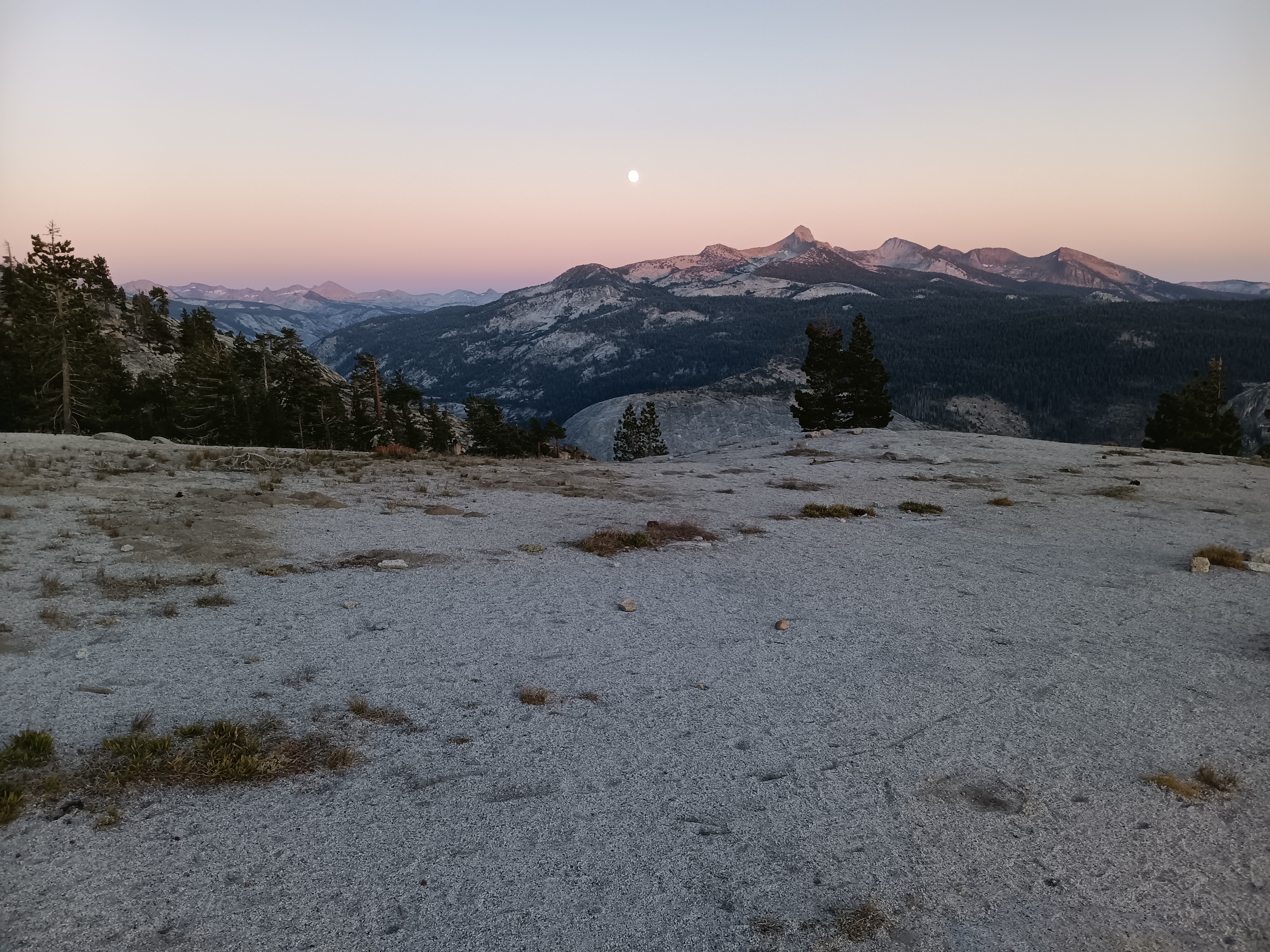 The JMT is a shoulder-wide super-highway through the wilderness. The trails are always well maintained and one meets about 10 to 30 people every day from all over the world of all ages. Only on the last 5 miles past iconic Half Dome into Yosemite Village 100s or 1000s of people moved up and down the trails for the day. Sleeping at the backpacker’s campground in Yosemite Village (camp #10) for $8, I splurged on an awesome $40 breakfast at the majestic Ahwahnee Hotel. These are my priorities and I was back on serene trails turning right (west) near Nevada Falls to head up towards the Illilouette Valley. The last day hikers were a lovely couple from Lithuania with their two lively and happy children. Two hours later I reached the Illilouette watershed where I slept solidly on a thick and soft bed of pine needles (camp #11).