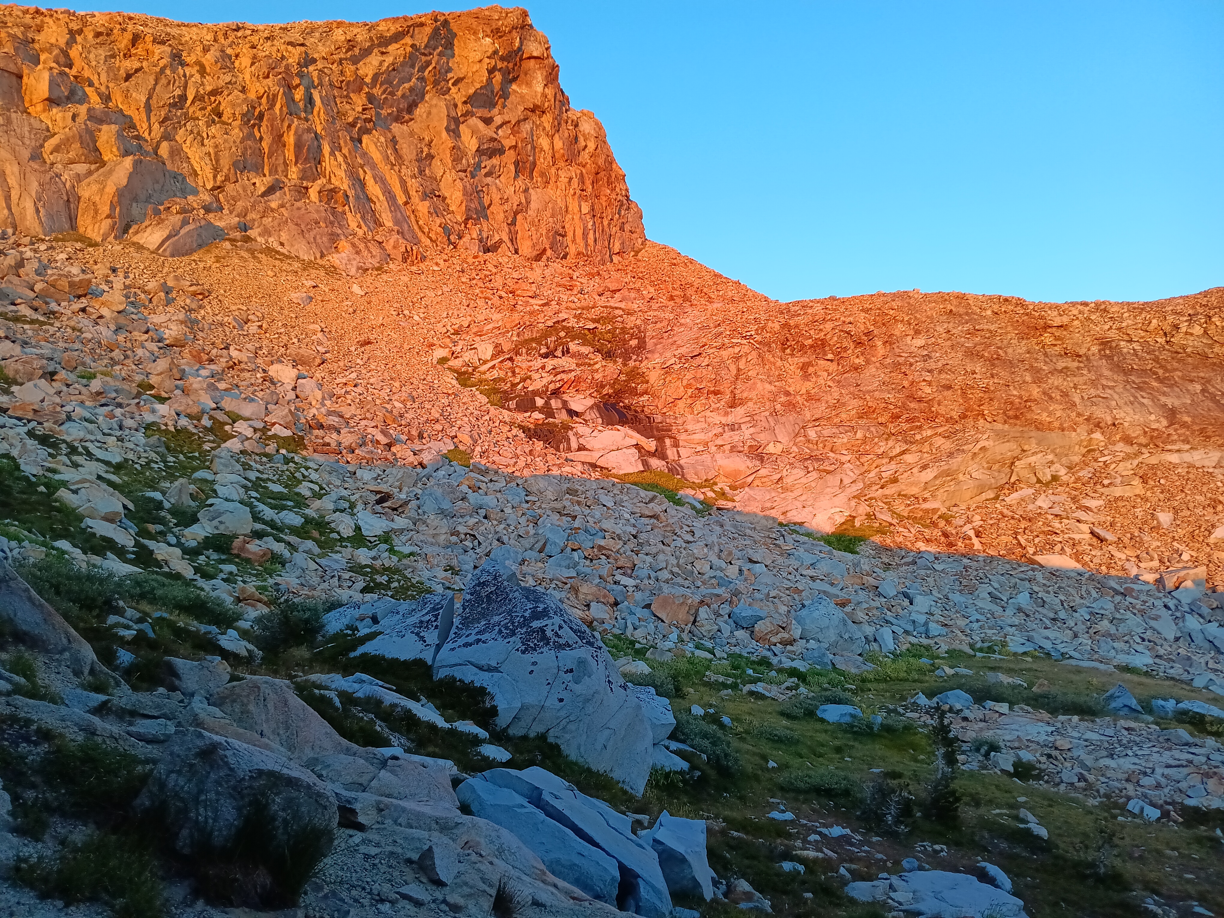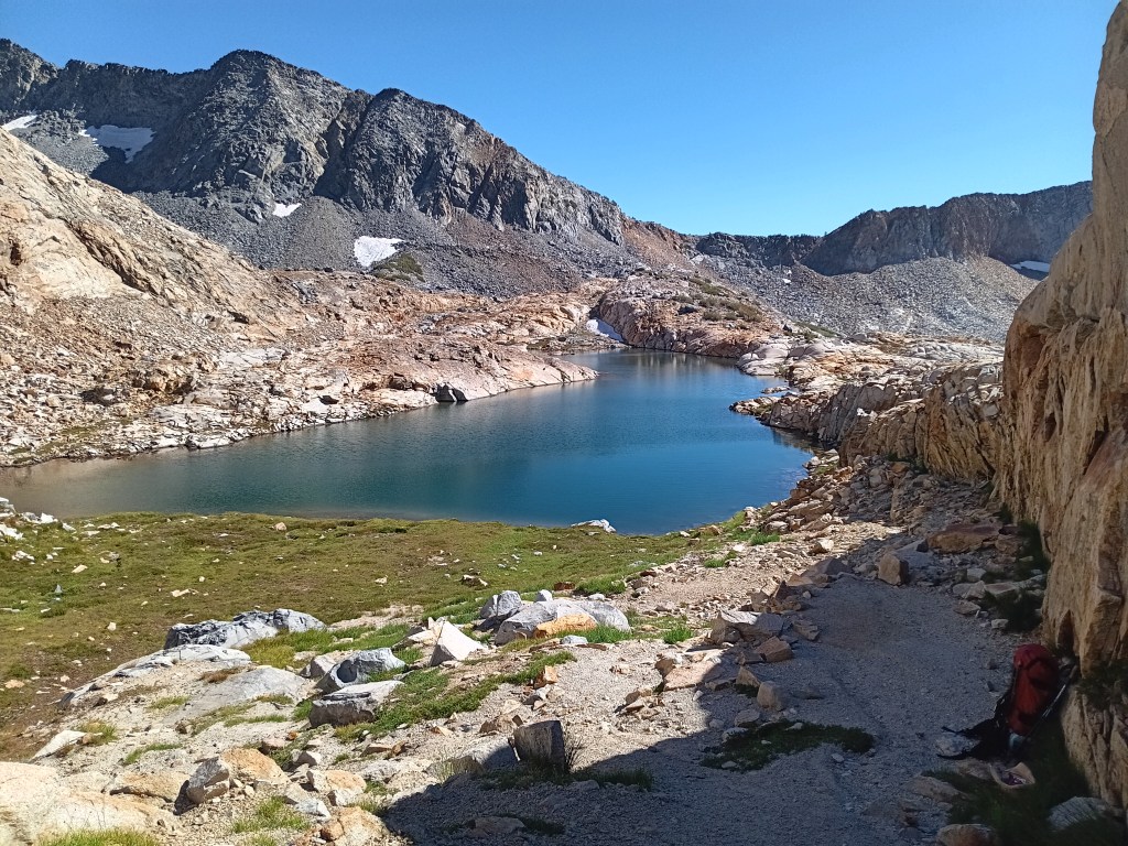 What served me well was to always listen to my body. I was NOT fighting to reach a destination. I walked only as long as it was fun (mostly) and always stopped for an hour or two when I felt like it. I took off my pack to investigate a pretty flower or a bee on it, watched a bird, or picked wild Elderberries, Red Currants, Rasberries, and even Blueberries. I made camp when I felt like, I was prepared to go home any day that was not fun, completion of the JMT or a certain section was not important. Some days I felt like walking 6-7 miles, but on other days it was 12 miles (to reach that cheeseburger at Red Meadow) or 17 miles (my last day on the trail to reach Lone Pine). It also made me enjoy the well maintained John Muir Trail the next 18 days.